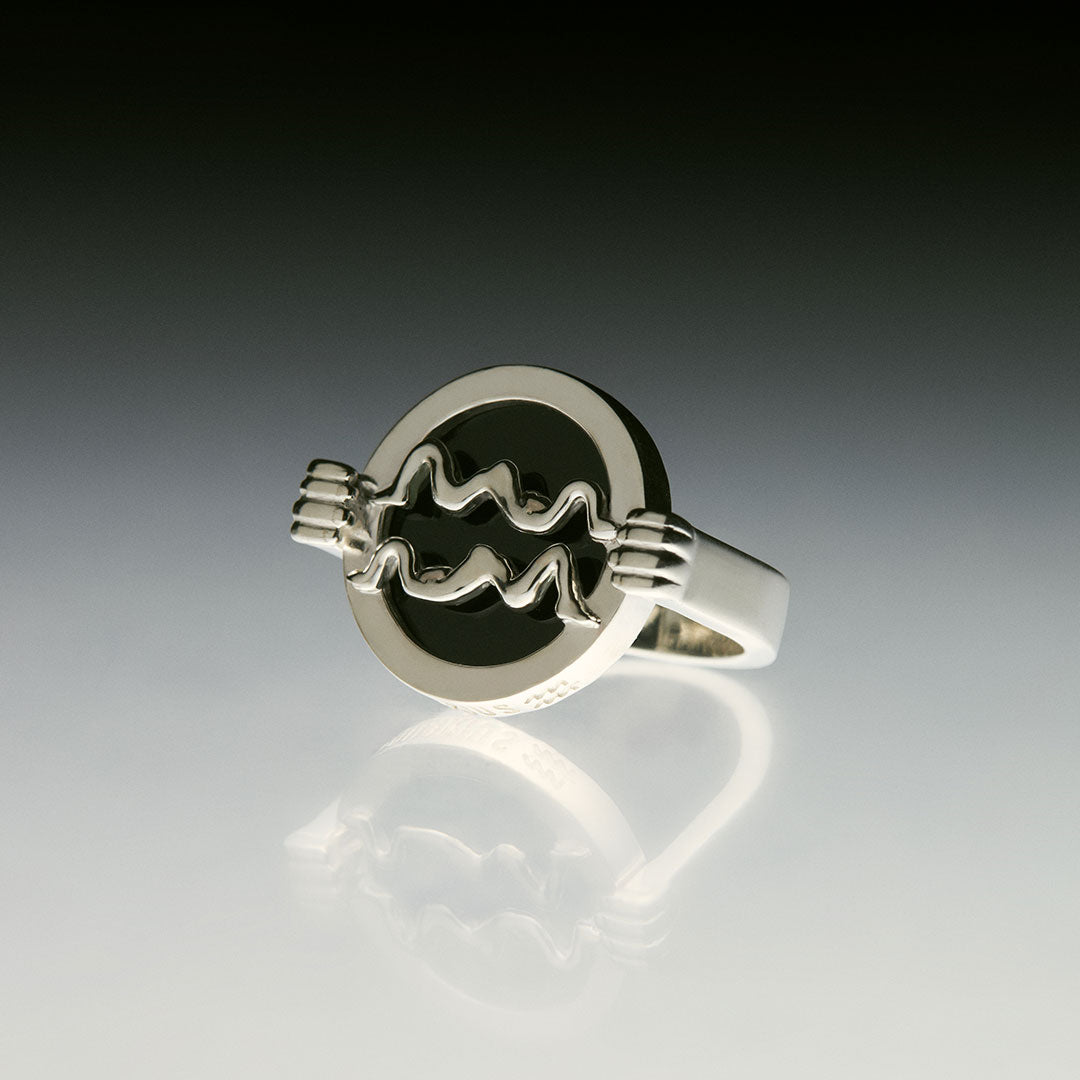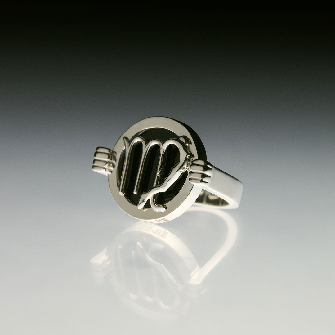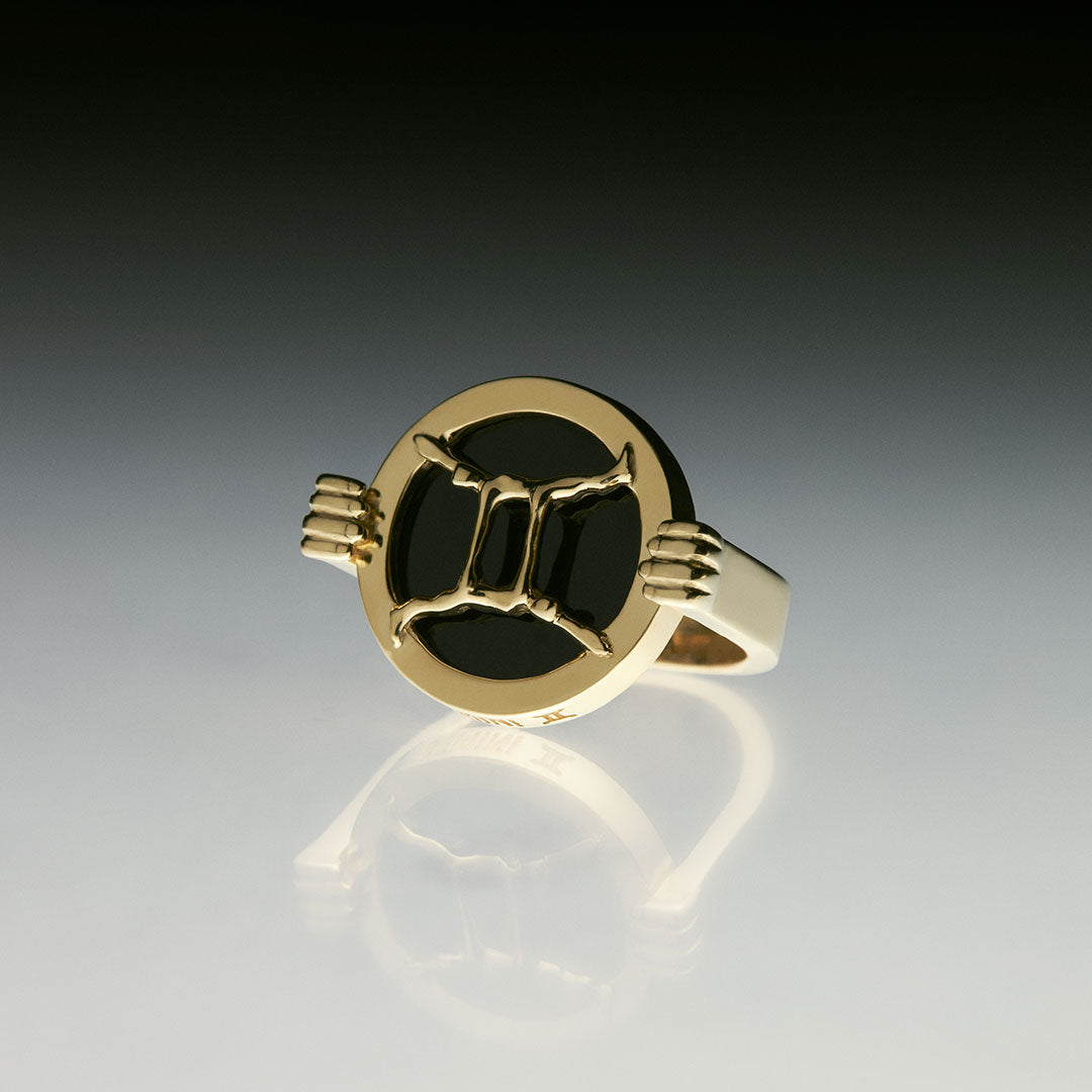 Três mãos localizadas no avesso das peças formam um triângulo, invocando a sabedoria da geometria sagrada.