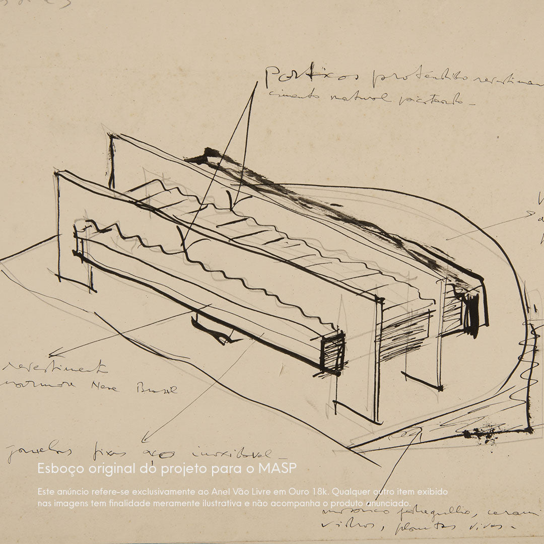 Este anúncio refere-se exclusivamente ao Anel Vão Livre Lina Bo Bardi em Ouro 18k. Qualquer outro item exibido nas imagens tem finalidade meramente ilustrativa e não acompanha o produto anunciado.