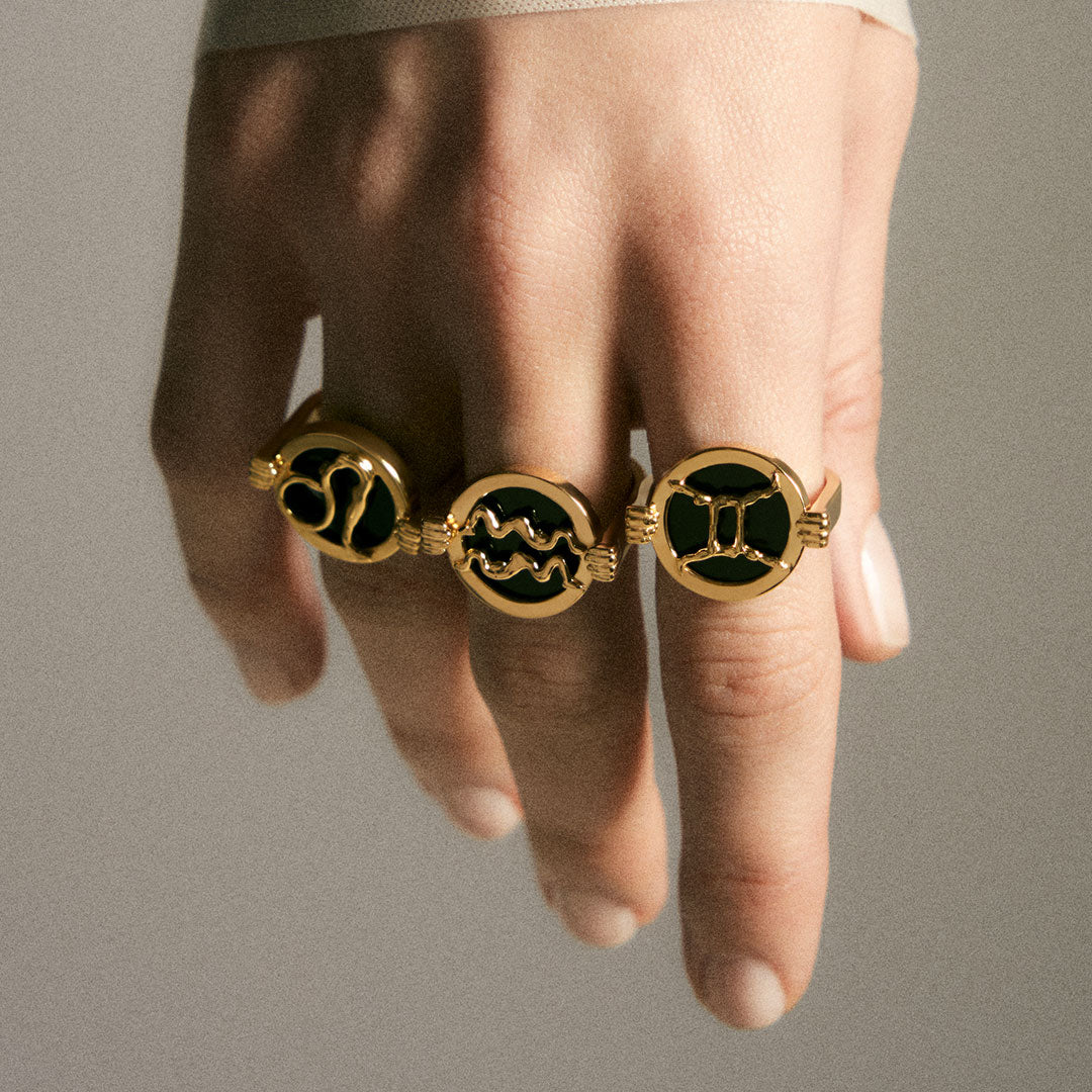 O Anel Zodíaco Paola Vilas integra a coleção Zodíaco, que revisita os arquétipos astrológicos a partir do protagonismo feminino. Corpos femininos esculpem os símbolos do zodíaco, preservando a essência escultórica característica da marca.