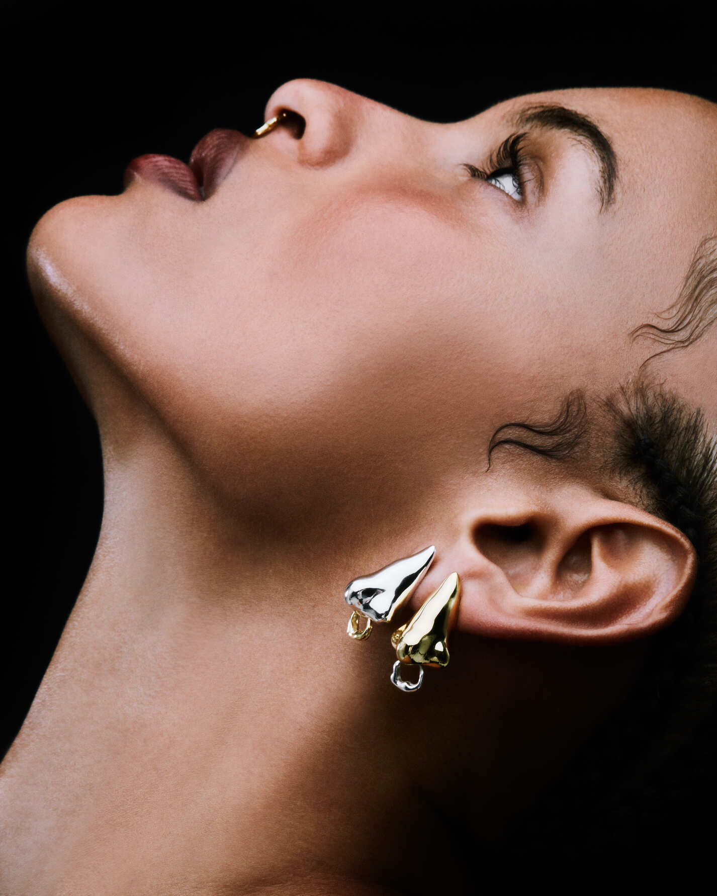 Em Chica, corpo feminino adorna a escultura de nariz como um piercing inusitado que magnetiza o olhar para a magia dos mínimos detalhes.