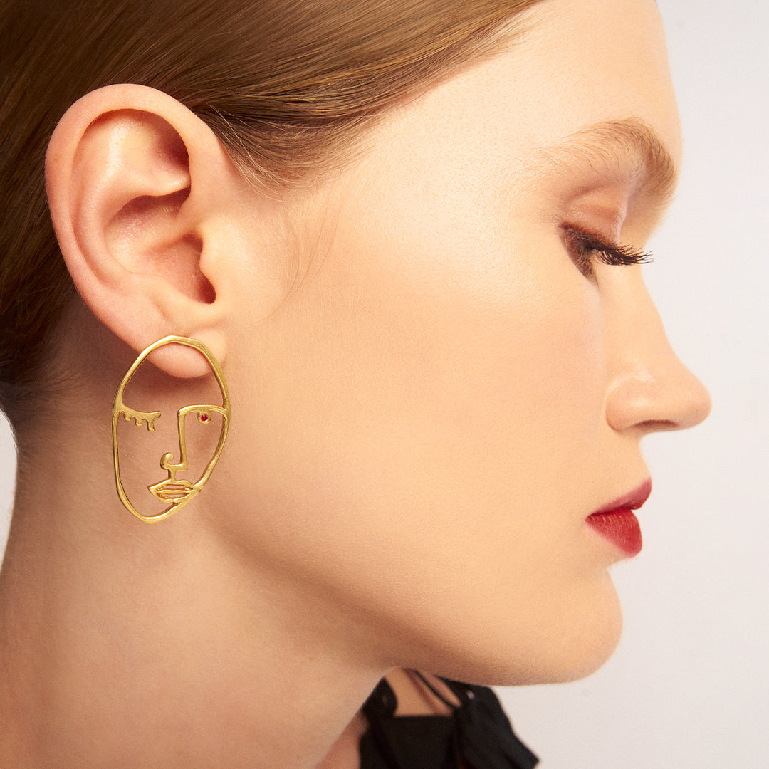 Material: Brinco Cocteau, um de nossos clássicos, disponível nas variantes Prata 925 ou Prata 925 com banho em Ouro 18k. Ambos com Rubi natural.