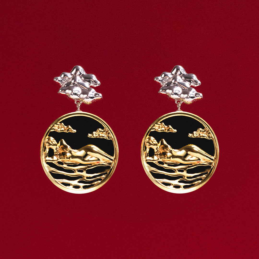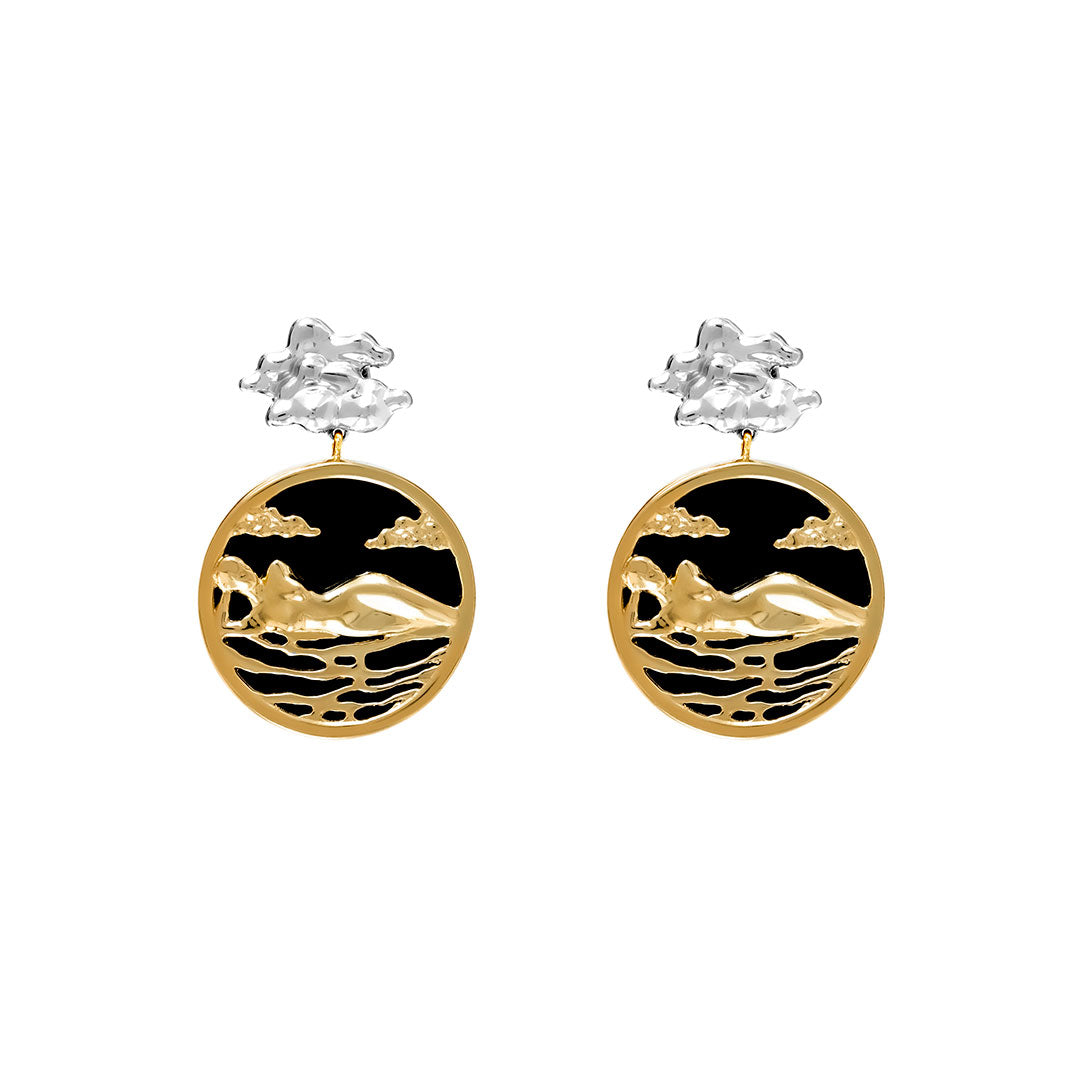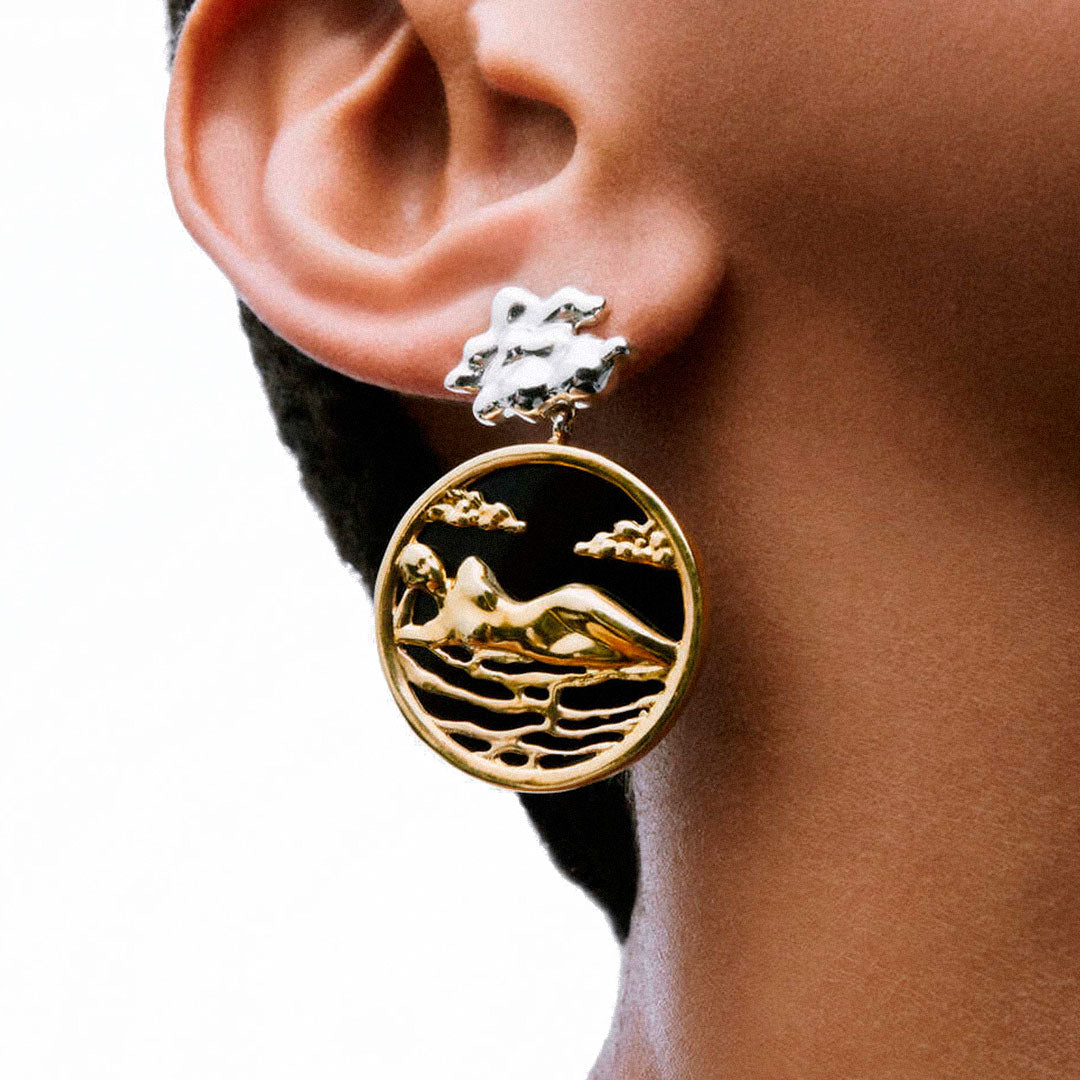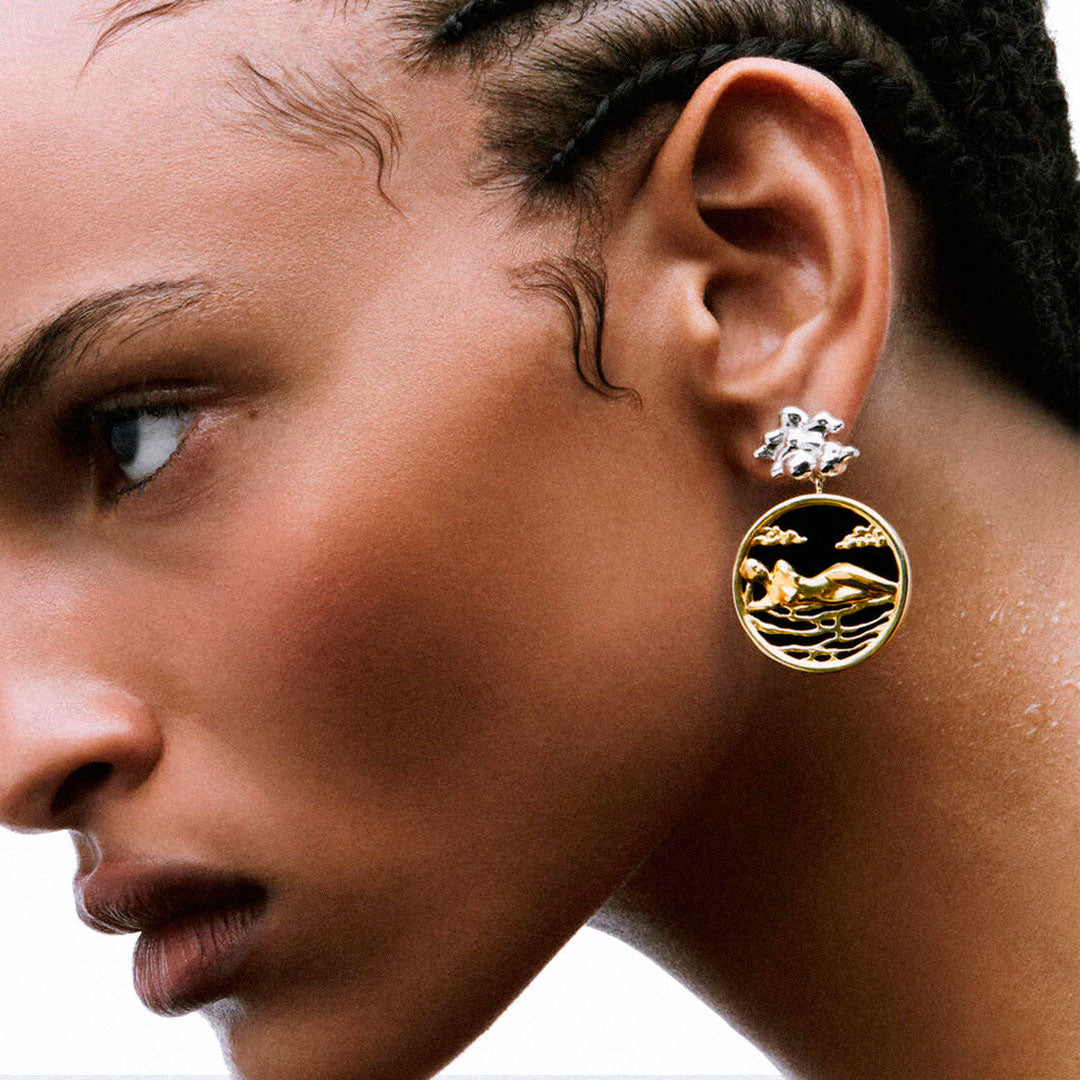 A Joia Paola Vilas brinco Elza é uma escultura vestível em prata 925 ou prata com banho de ouro 18k e pedra Agatha negra.