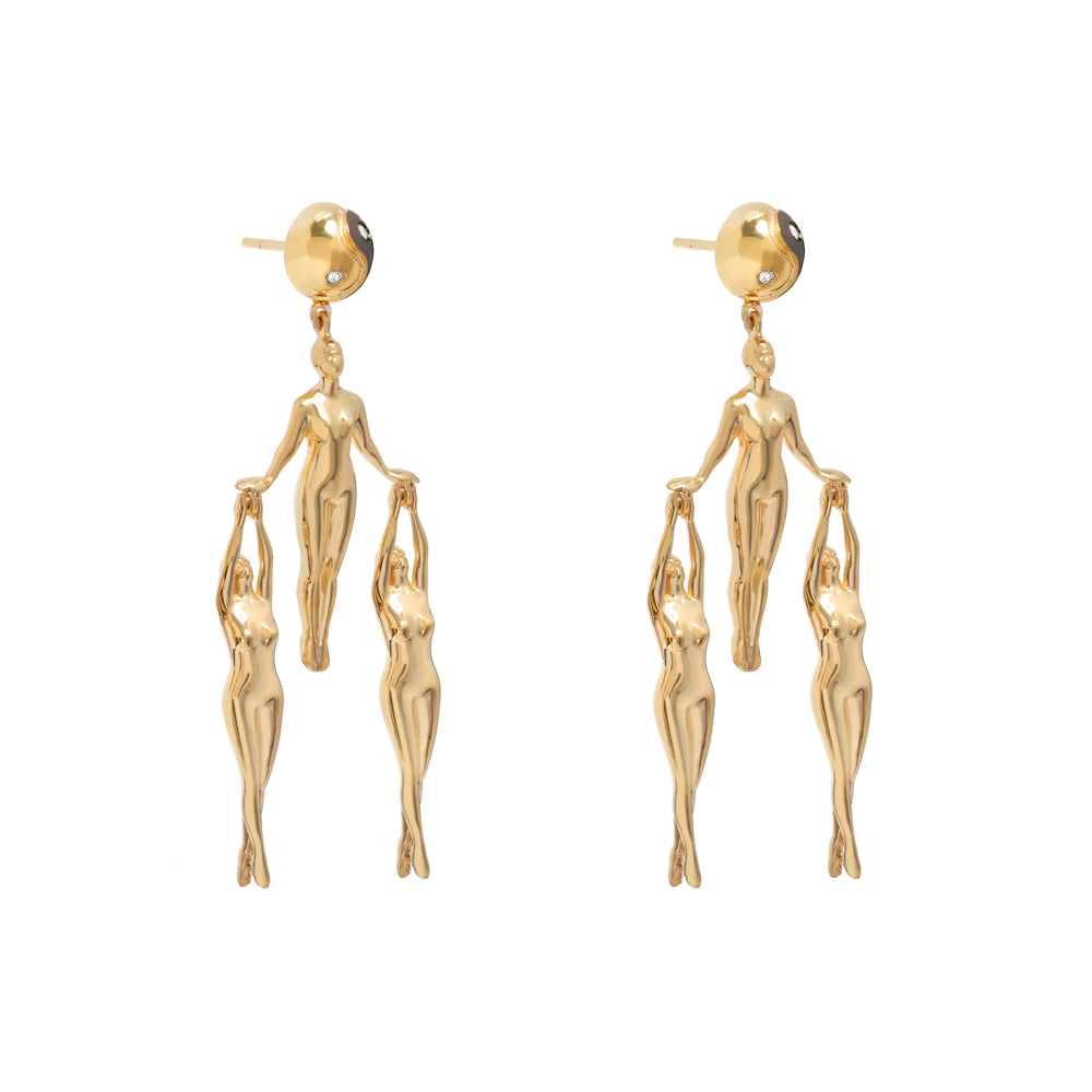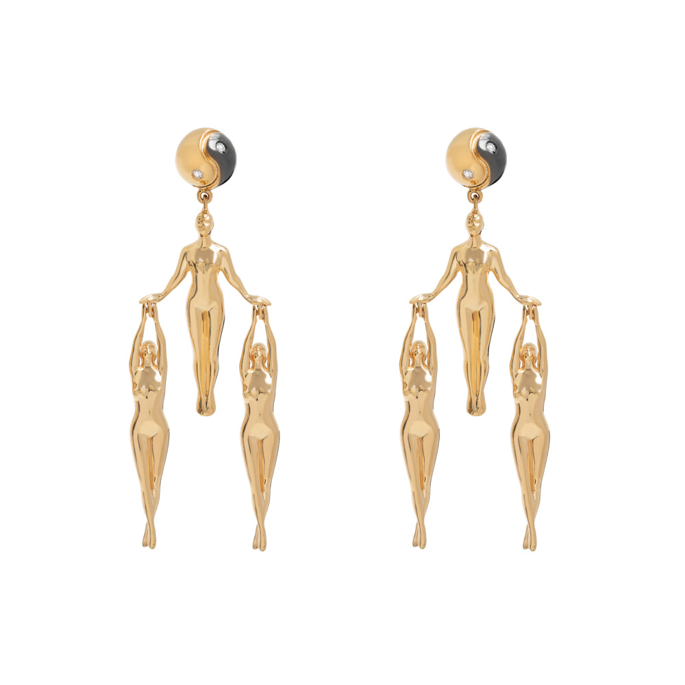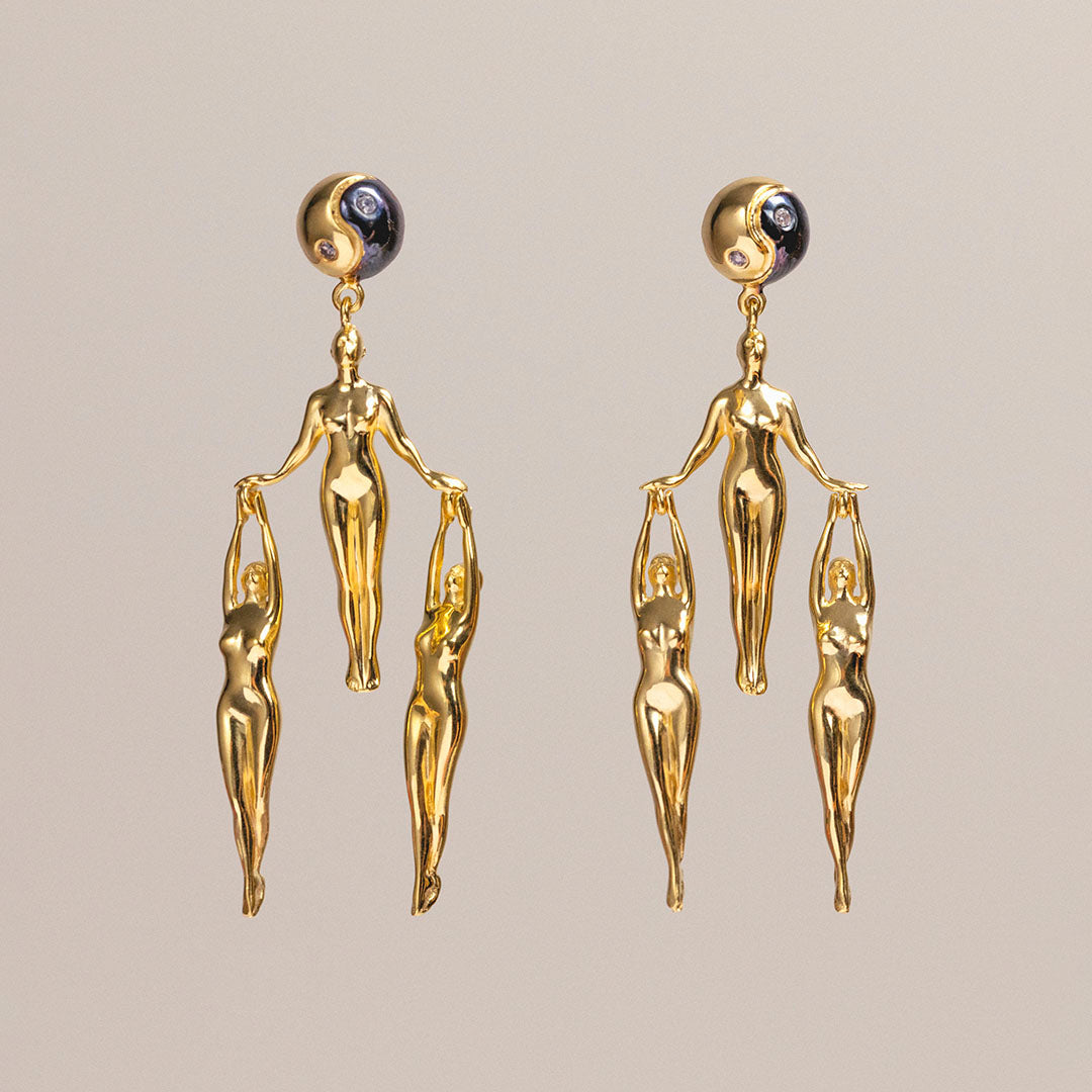 O Yin-yang, símbolo de forças opostas que se complementam, sustenta corpos em equilíbrio, leveza e recebem brilhantes chocolate para marcar a preciosidade da dança entre luz e sombra.