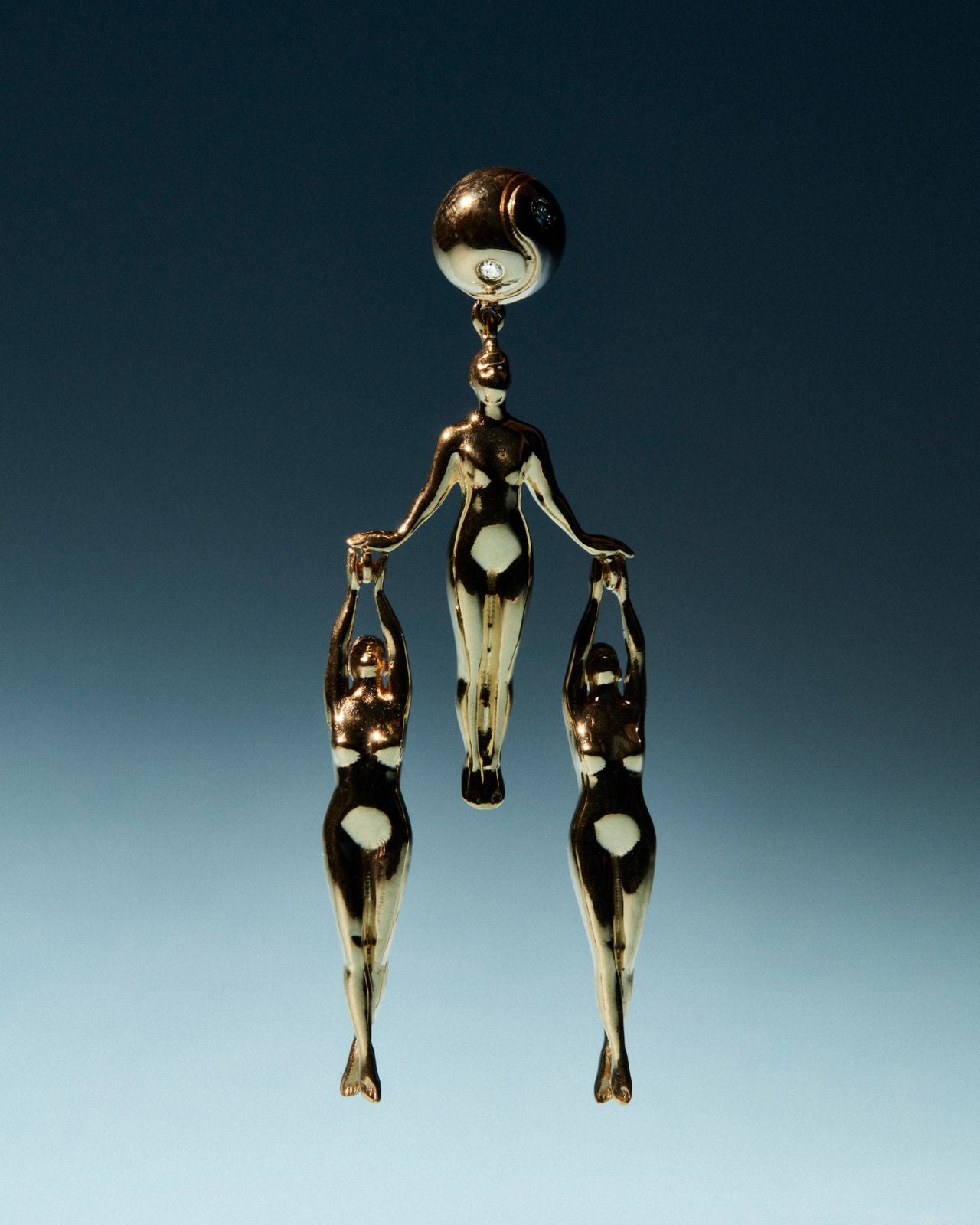 A coleção apresenta pequenos tesouros espirituais traduzidos para o plano material. Descortino mundos por meio de imagens simbólicas que funcionam como portais para novas dimensões do imaginário. As esculturas-rituais carregam símbolos que codificam a expansão do feminino, sexualidade, equilíbrio, imaginação, sob uma ótica que transita entre o sublime e o sacana.