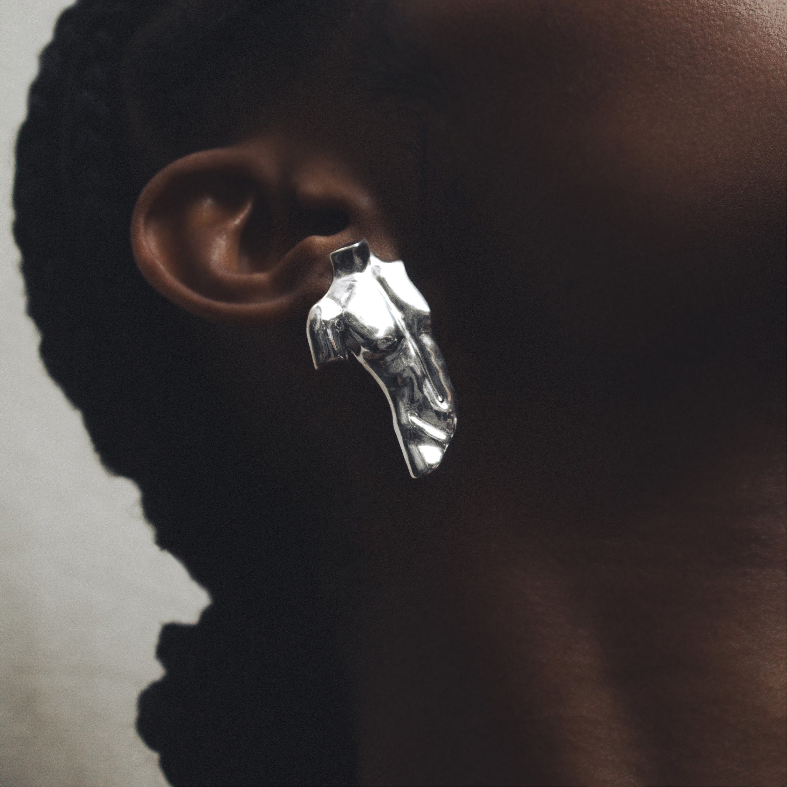 A Joia Paola Vilas Brinco Lynch é uma escultura vestível com formato neo-surrealista de corpo feminino e masculino feita em prata 925. Um convite ao universo dos sonhos e propõe novas realidades.