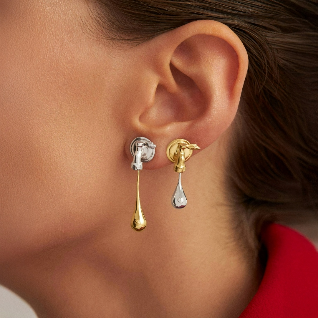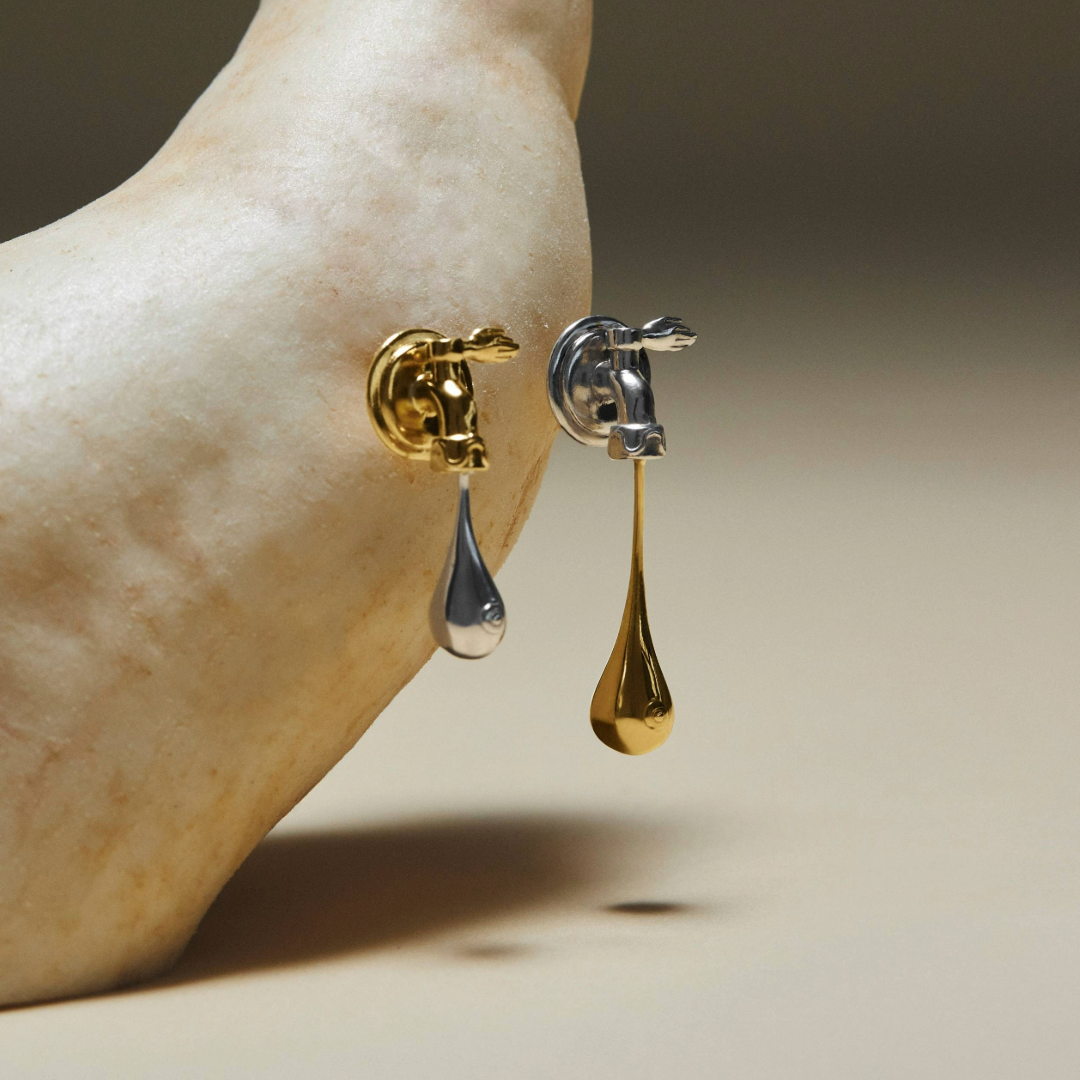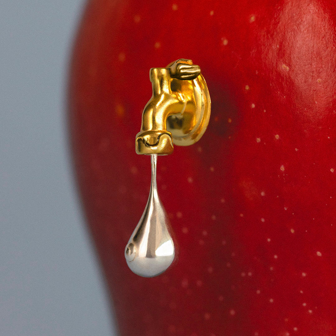 A Joia Paola Vilas brinco Mate Leoa é uma escultura vestível em formato de torneiras de mate e gota em prata 925 ou prata com banho de ouro 18k.