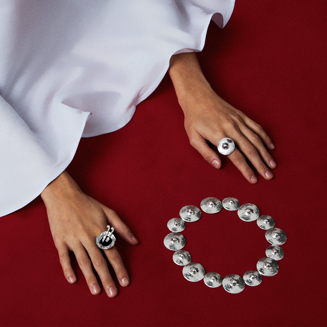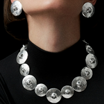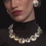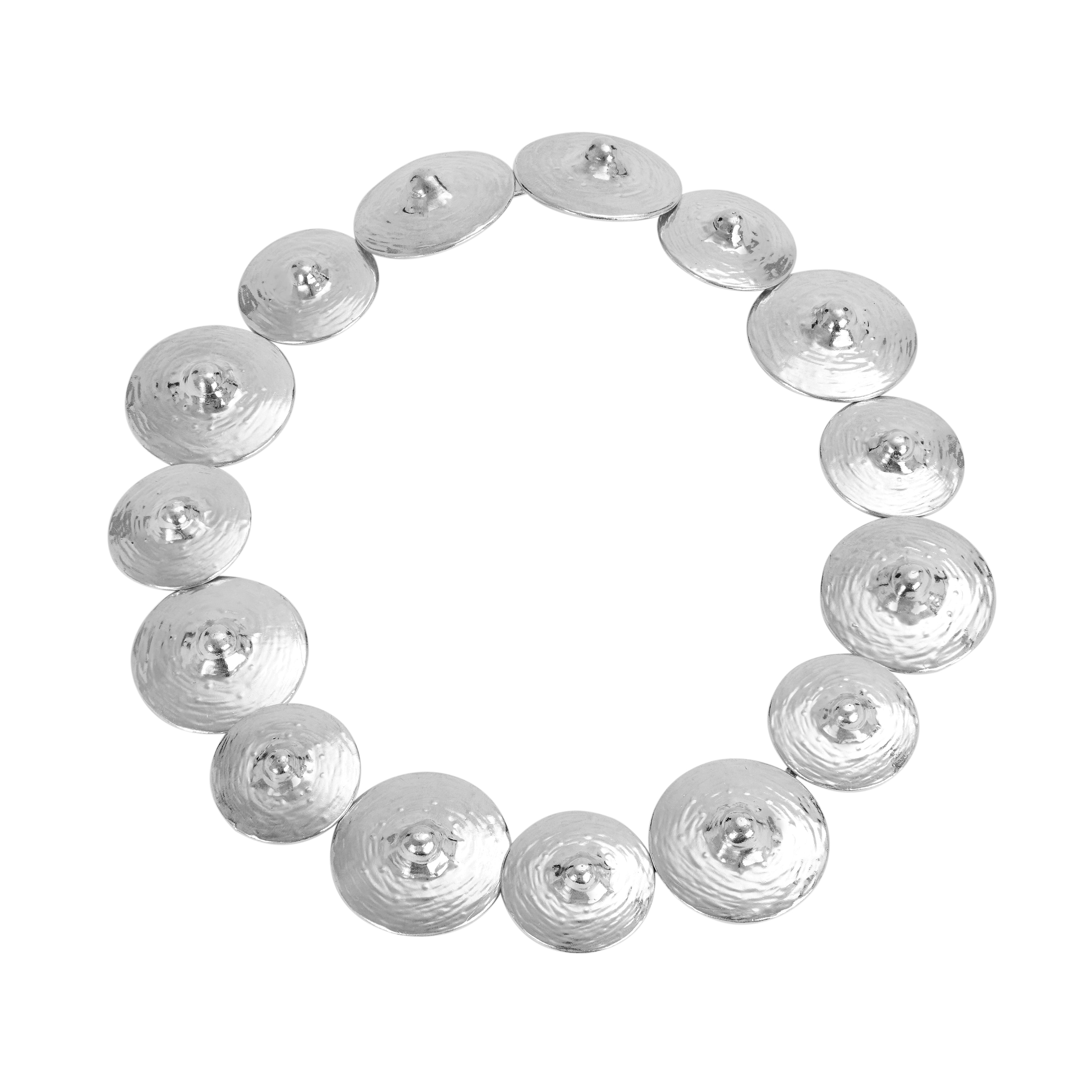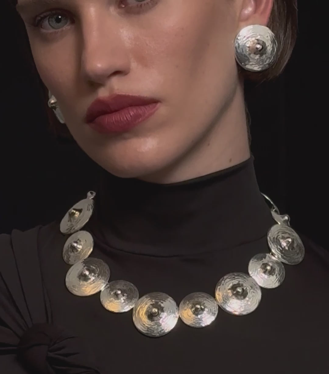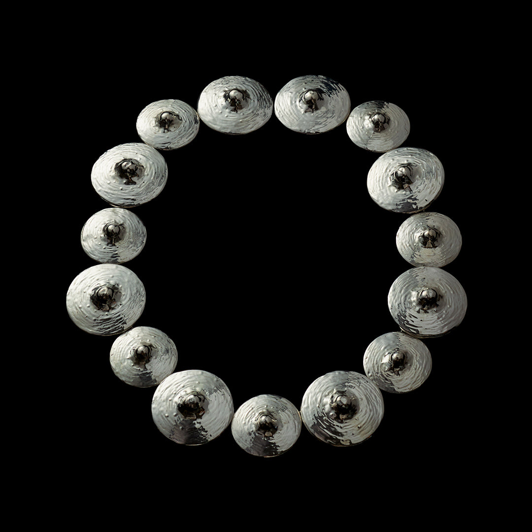 A Joia Paola Vilas Colar Cecilia é uma escultura vestível com formato circular de mamilos feita em prata 925 com acabamento de fecho invisível, tornando a peça continua em todos os seus ângulos.